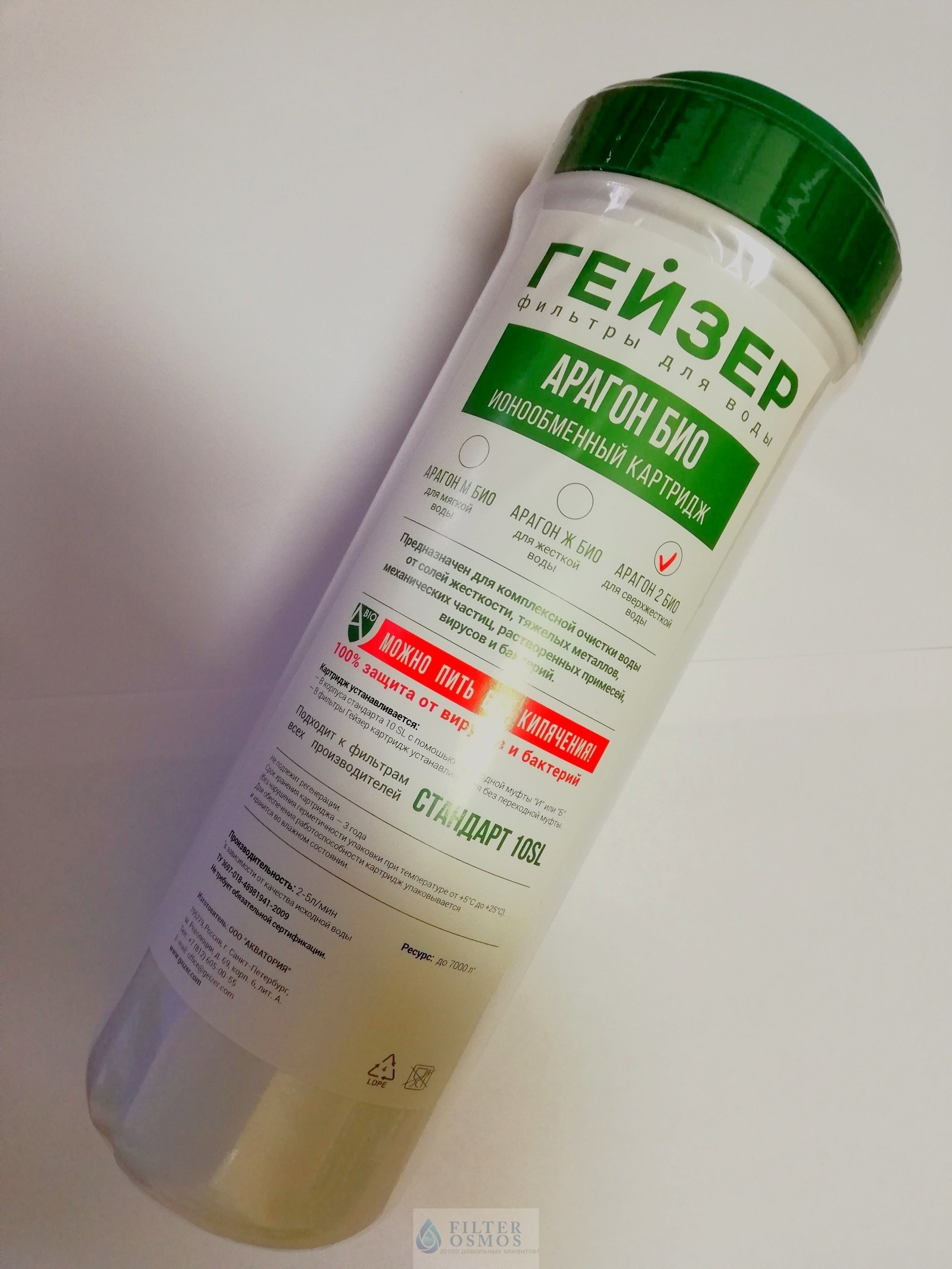 Фильтрующий элемент Арагон-2 БИО доступен в наборах сменных картриджей Гейзер № 7 и Гейзер комплект № 8.