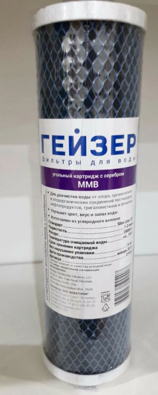 Эффективно очищает воду от свободного хлора, удаляет органические и хлорорганические соединения, устраняет неприятные запахи и посторонний вкус. Добавка серебра в картридж ММВ-10SL обеспечивает бактериостатический эффект на весь срок эксплуатации картриджа (до 10000л.)