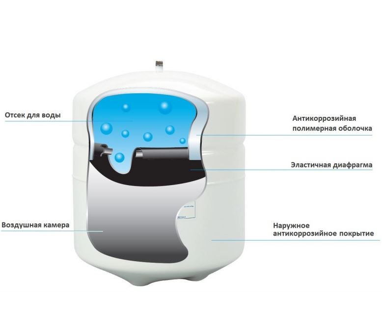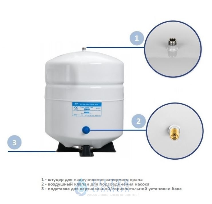 Накопительный бак RO-122 для систем обратного осмоса Атолл А-550 Патриот.- Вмещает до 8 л фильтрованной воды (общий объём 12 л).