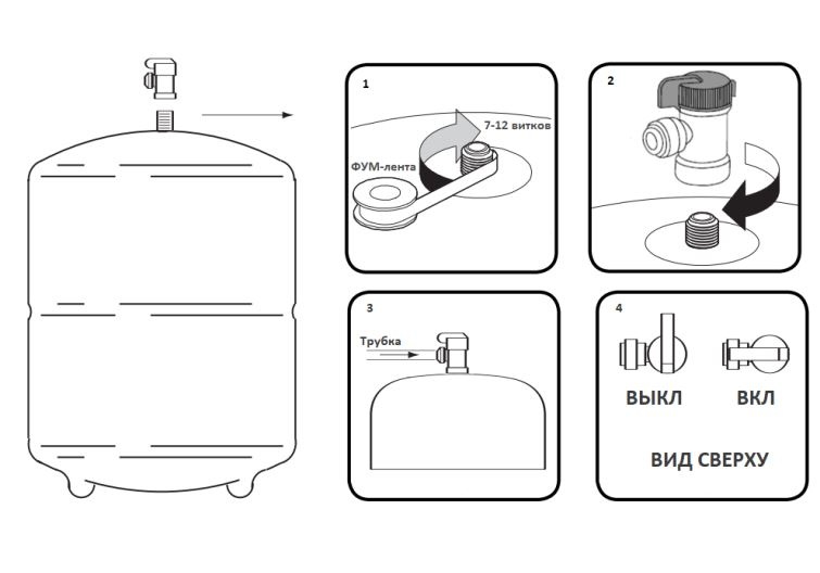 - Кран накопительного бака приобретается отдельно или скручивается со старого бака!