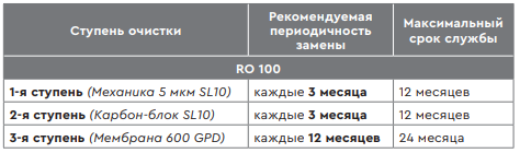 • Регулярная замена картриджей: механического и угольного — каждые 3 месяца.• Мембрана и фильтр BLAND — 1 раз в год.