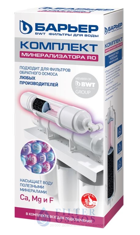Барьер Профи Минерализатор RO используется в качестве постфильтра для нормализации баланса минералов в воде.