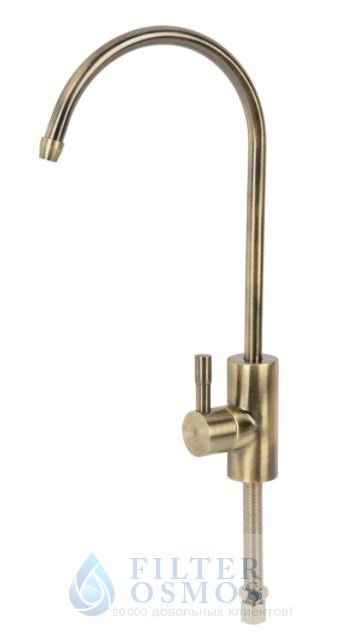 Кран для питьевой воды выполнен в благородном цвете бронзы - подойдет ценителям стиля, тем, кто хочет выдержать свою кухню в единой цветовой гамме. Предназначен для подачи очищенной воды из системы фильтрации (проточной или обратноосмотической).