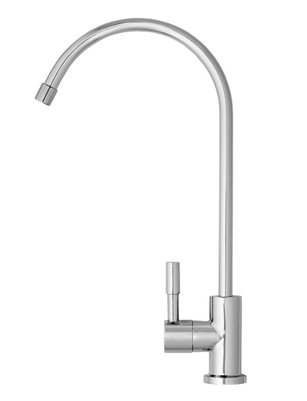 Предназначен для использования с бытовой системой очистки воды. Регулирует подачу холодной очищенной воды. Большой диаметр излива позволяет использовать кран в мойках большого объема. Изготовлен из современных экологически безопасных материалов с нанесением особо прочного хромированного покрытия. Устанавливается на мойку или столешницу в любом удобном для эксплуатации месте.