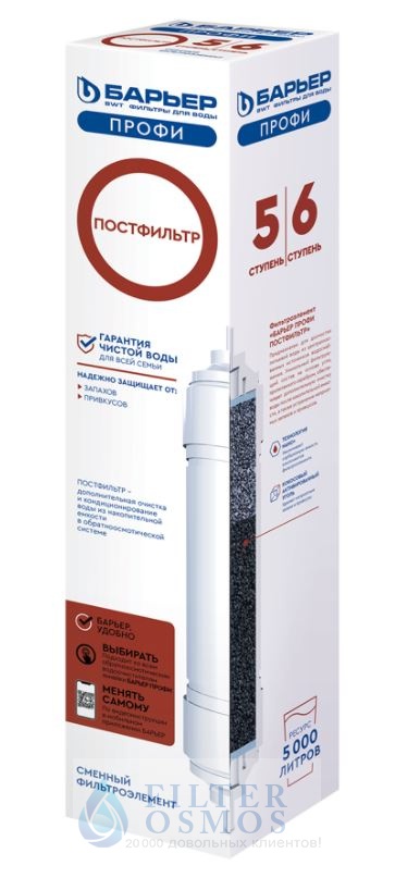 Подходит для: Фильтр ПРОФИ Осмо 100, Фильтр ПРОФИ Осмо 100 М, Фильтр ПРОФИ Осмо 100 Boost, Фильтр ПРОФИ Осмо 100 Boost МОсобенности картриджа Барьер Профи Постфильтр: