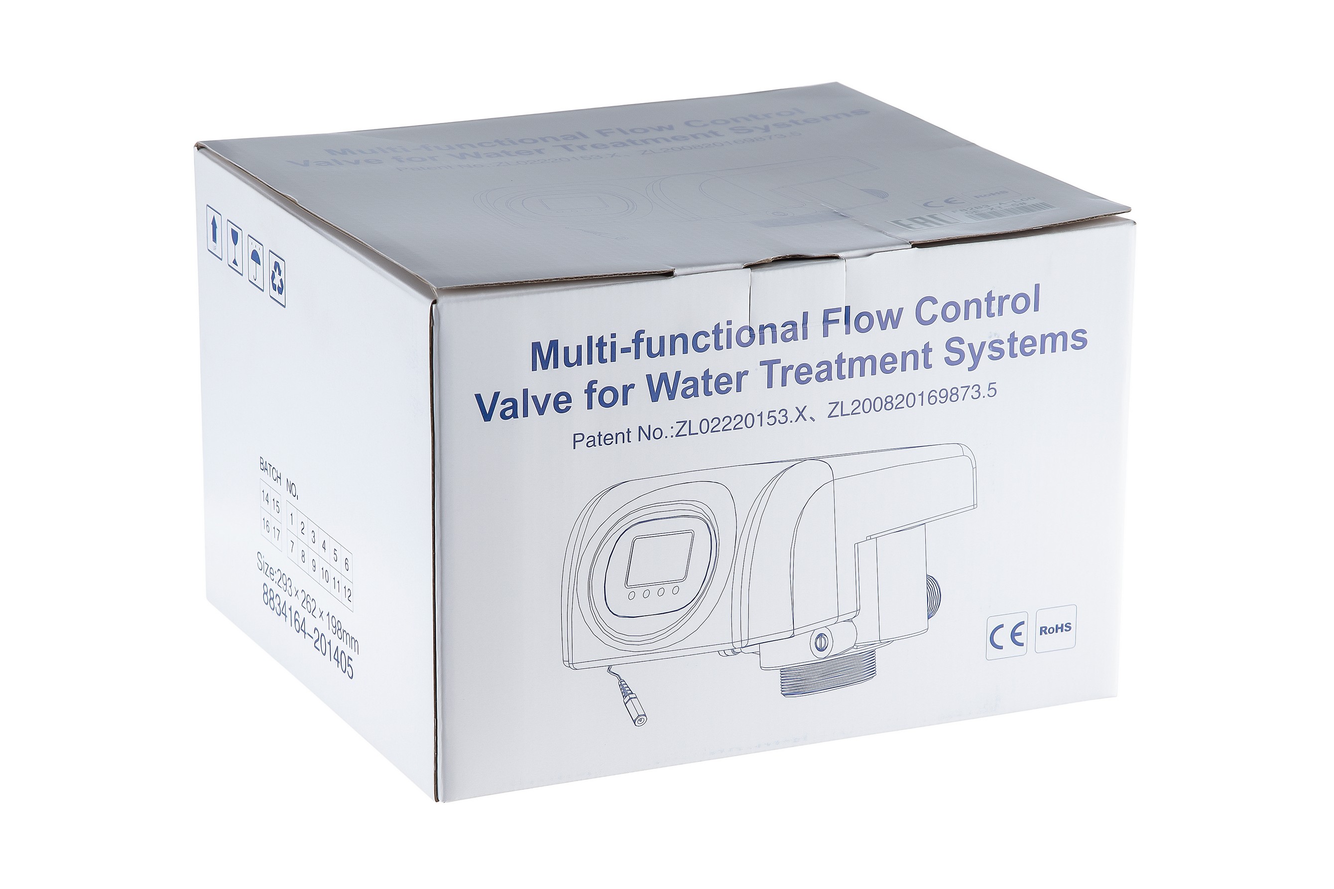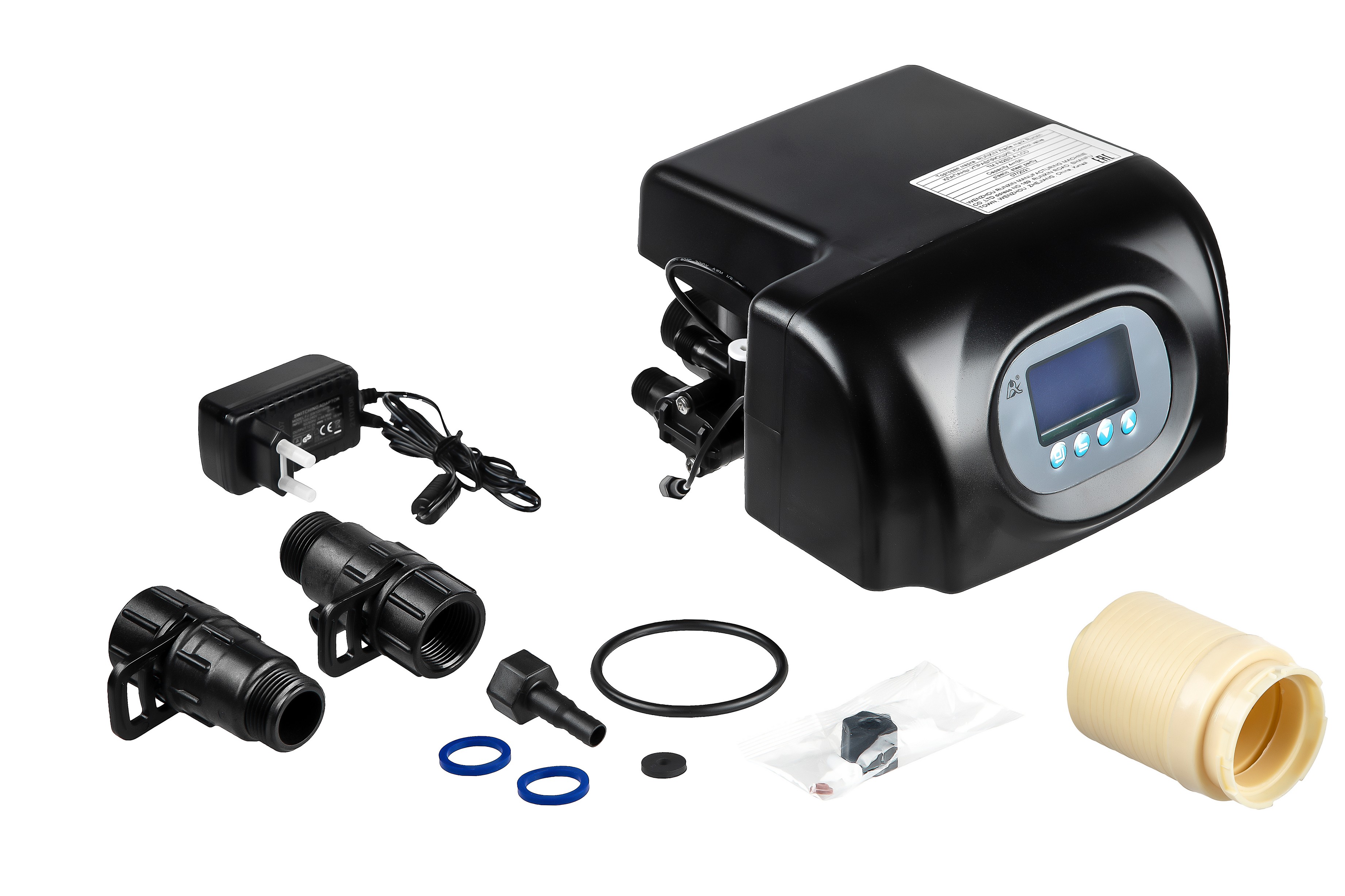 Блок управления автоматический по объему отфильтрованной воды реагентный для умягчителей. Предназначен для коммутации потоков воды внутри корпуса скорого фильтра с зернистой загрузкой.