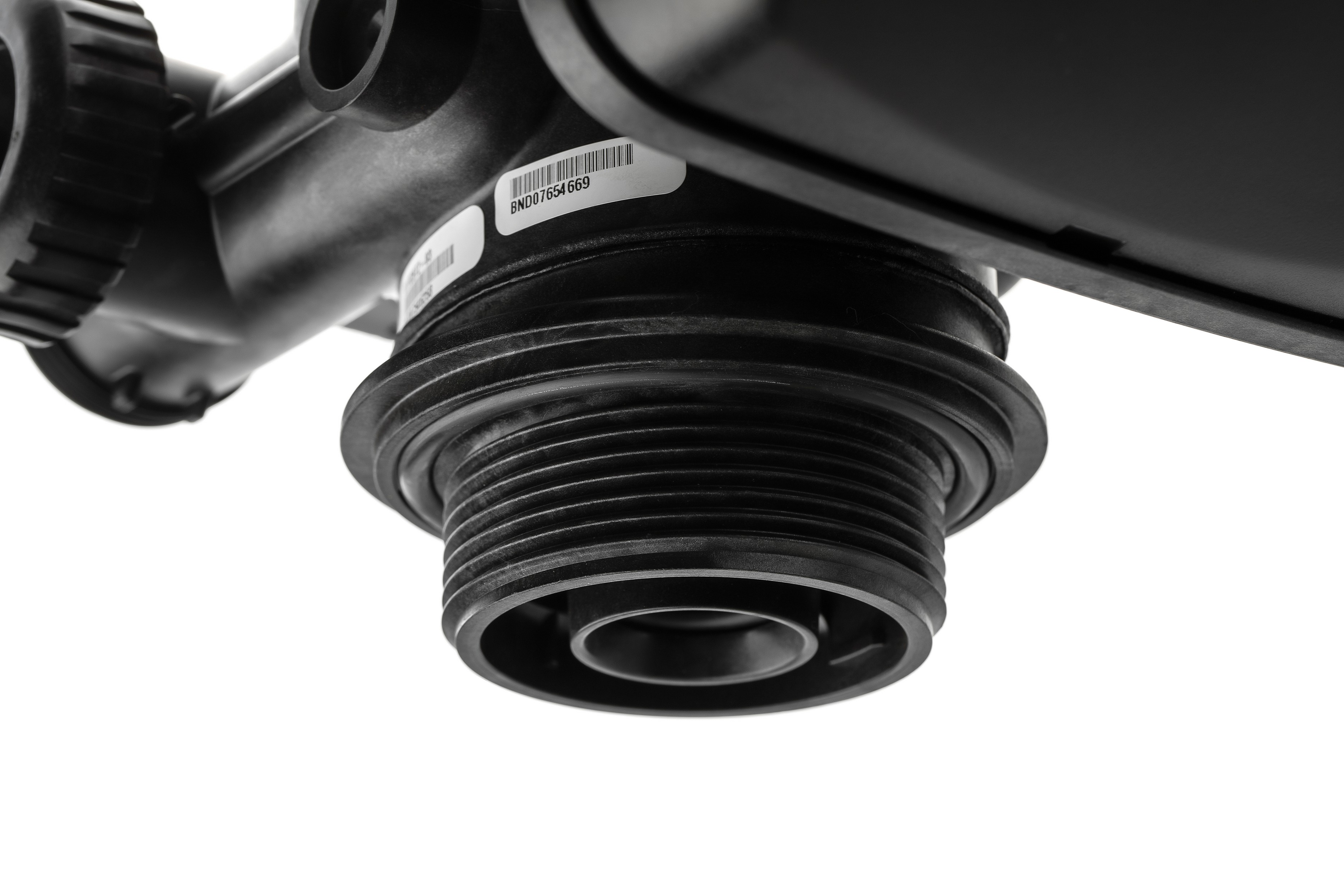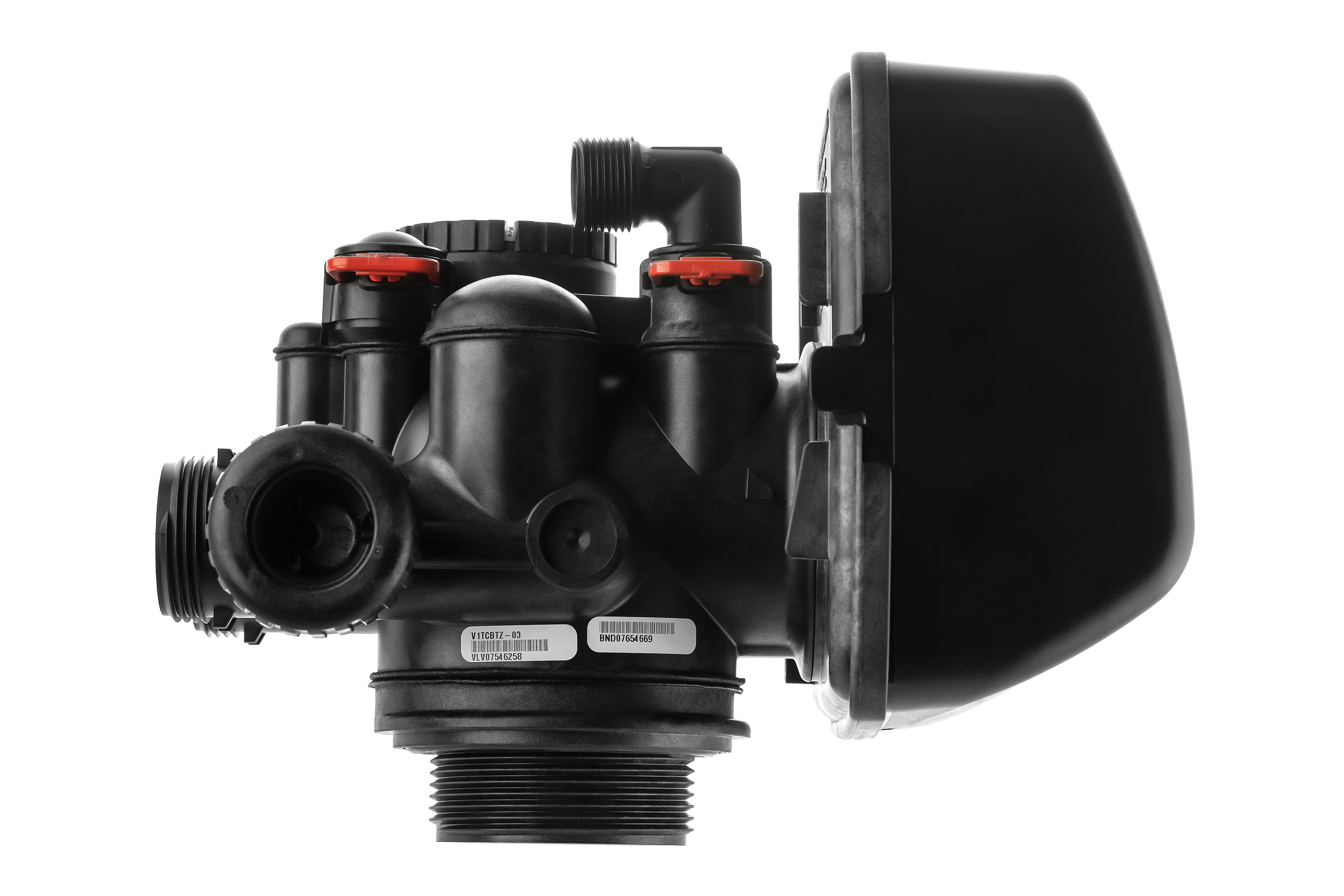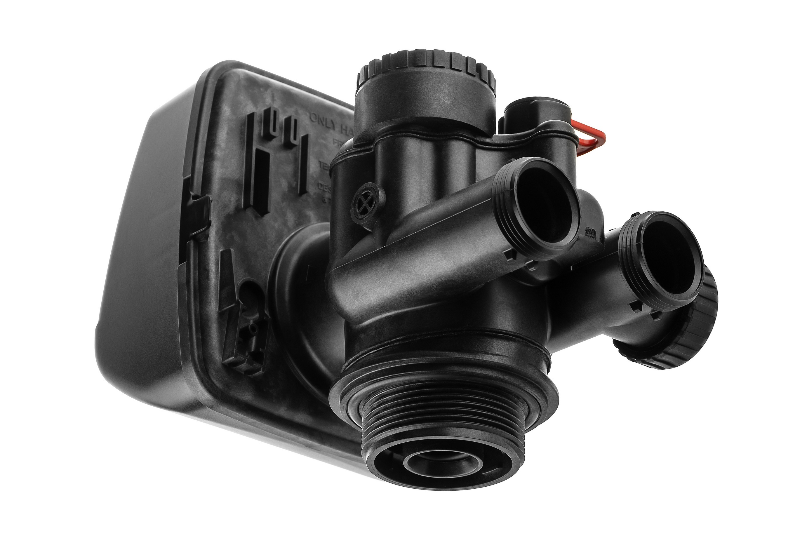 Блок управления умягчителем с поршневым механизмом коммутации потоков воды. Выполнен из высокопрочного композитного пластика. Блок состоит из корпуса с каналами, поршня, приводимого в действие электродвигателем, платы с микропроцессором, контроллера потока воды (для умягчителей с регенерацией по результатам контроля объема проходящей воды) Может настраиваться для работы как в роли клапана фильтра (трехцикловый), так и умягчителя (пятицикловый), то есть имеет унифицированную конструкцию.