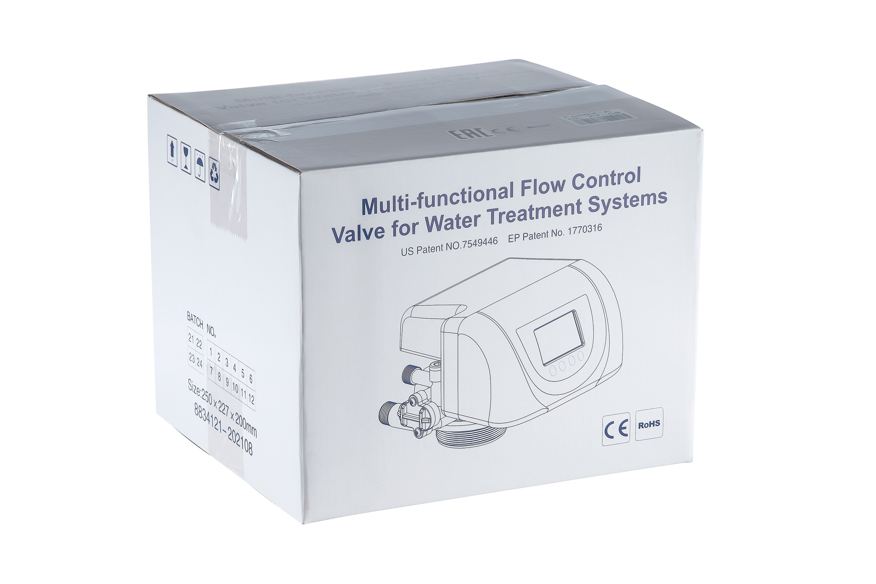 Блок управления автоматический по объему отфильтрованной воды реагентный для умягчителей. Предназначен для коммутации потоков воды внутри корпуса скорого фильтра с зернистой загрузкой.