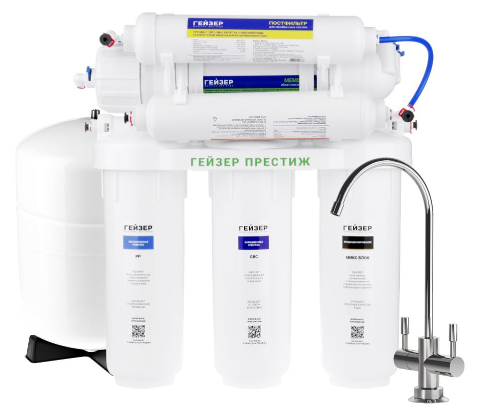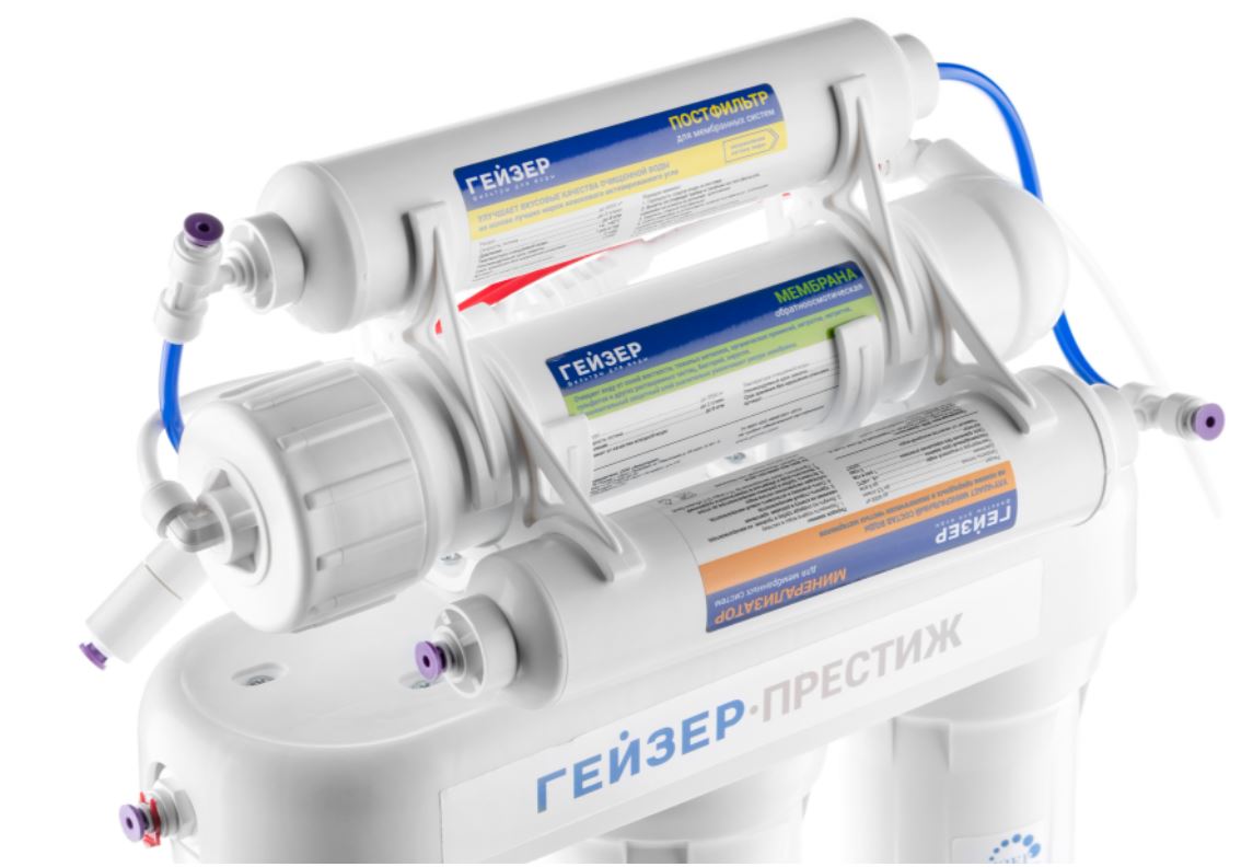 Фильтр Гейзер Престиж М очень эффективная очистка водопроводной воды до уровня питьевой в условиях городской квартиры или загородного дома, гарантированное устранение накипи, привкуса и мутности. Система обратного осмоса Гейзер престиж М сделана из прочных, качественных и безопасных материалов.