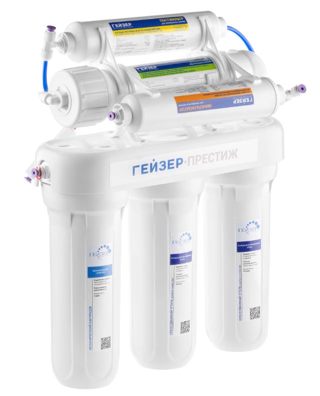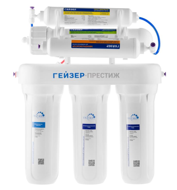 - Таким образом, вода, очищенная системой обратного осмоса Гейзер-Престиж, по своим свойствам близка к родниковой или талой воде горных ледников.