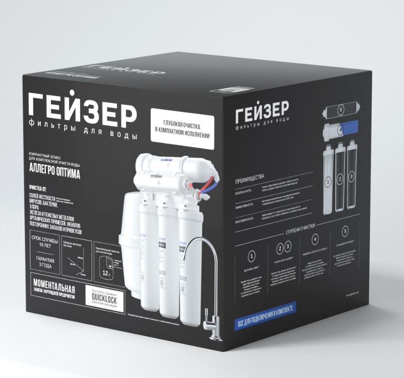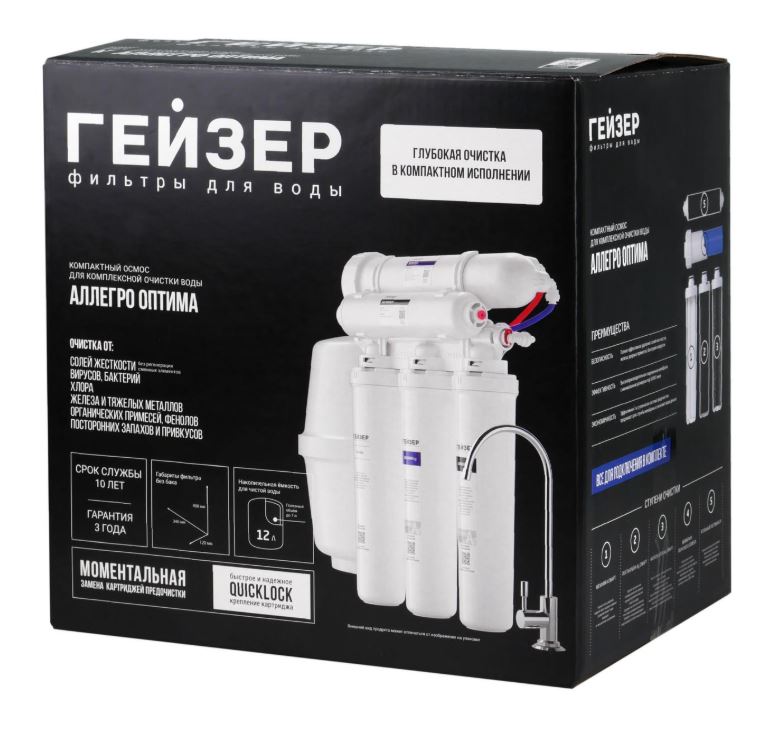 Чтобы работа обратноосмотической системы Гейзер Аллегро была стабильной, важно вовремя менять картриджи:
