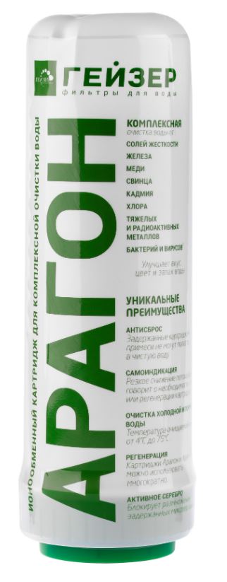 Ресурс картриджа до 7000 литров, а с учетом регенерации может достигать 25000 л. Арагон сам подсказывает, когда необходимо провести замену или регенерацию, благодаря свойству самоиндикации окончания ресурса – резкому уменьшению напора чистой воды.