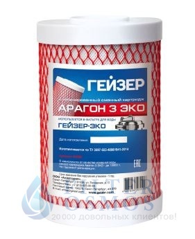 Применяется в фильтрах Гейзер ЭКО. Обладает тремя уровнями фильтрации (механической, ионообменной и сорбционной). Возможность регенерации фильтрующего элемента в домашних условиях. Подходит для холодной и горячей воды.