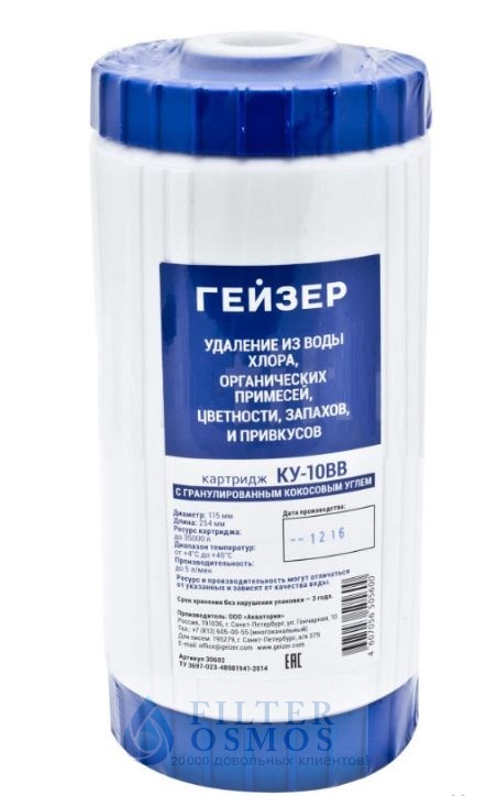 Картридж КУ предназначен для очистки водопроводной воды от растворенного железа, хлора, органических и хлорорганических соединений, пестицидов, нефтепродуктов, фенолов.