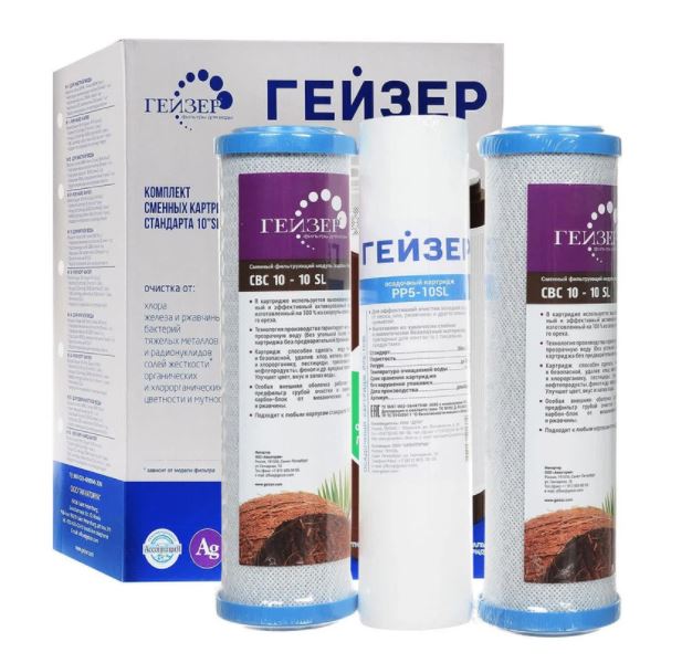 Комплект сменных картриджей №6 предназначен для предварительной очистки в системах обратного осмоса (подходит для фильтра Нанотек в том числе).Гейзер Комплект картриджей №6 предназначен для замены исчерпавших свой ресурс картриджей блока предочистки в системах обратного осмоса.