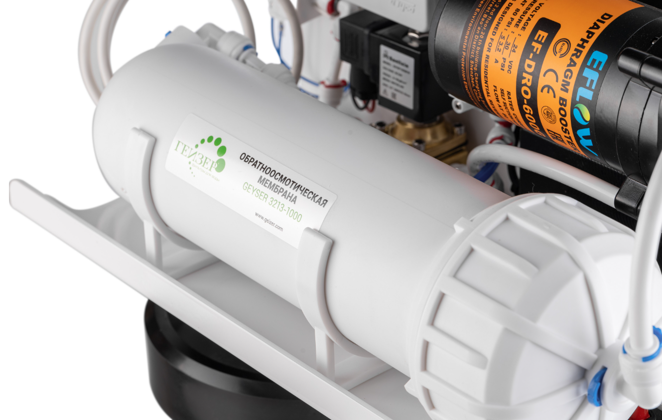 Система обратного осмоса Гейзер Лайн предназначена для доочистки водопроводной воды. Фильтр снижает общее солесодержание (минерализацию), в том числе соли жесткости до питьевых норм. Удаляет из воды тяжелые металлы (свинец, кадмий, медь, железо, хром и др.) и радиоактивные элементы (кобальт, полоний, цезий, радий). Полностью задерживает патогенные бактерии и болезнетворные вирусы. Устраняет привкусы, запахи и цветность воды.