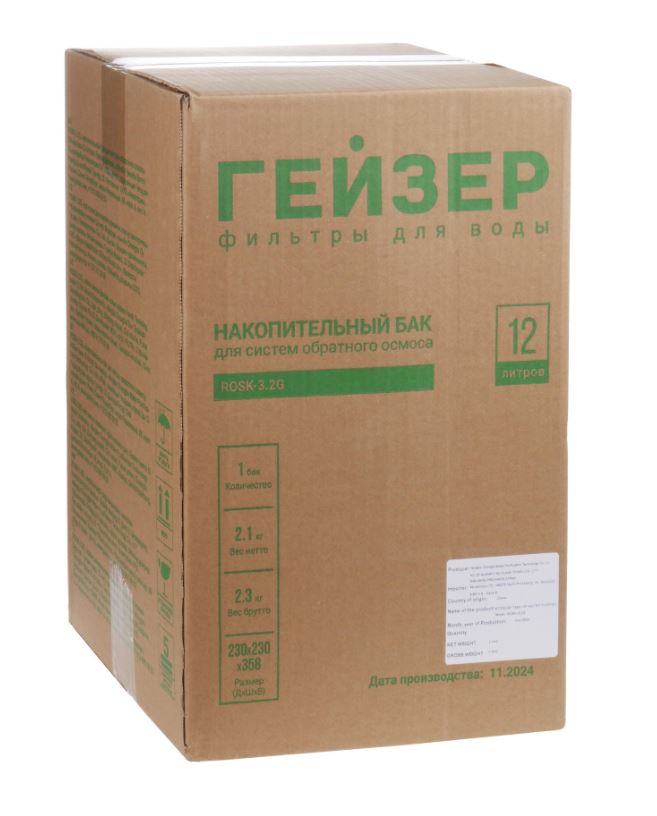 Металлопластиковый накопительный бак Гейзер ROSK-3.2G 12 л применяется для комплектации систем обратного осмоса, используется для хранения и подачи очищенной воды. Он может дополнять мембранные фильтры ГЕЙЗЕР серий «Престиж», «Аллегро», «Нанотек», «Премиум», а также обратноосмотические системы других производителей, конструкция которых подразумевает установку накопительной емкости.Контакт воды с пластиком может быть вреден для здоровья. Это связано с тем, что пластик при определённых условиях в большом объеме воды выделяет токсичные вещества и может загрязнять воду микропластиком. Вот почему внутренний резервуар бака Гейзер ROSK-3.2G изготовлен из стойкого к коррозии металла. Из экологически чистого пластика изготовлена внешняя часть стильного корпуса, что позволяет снизить вес изделия.