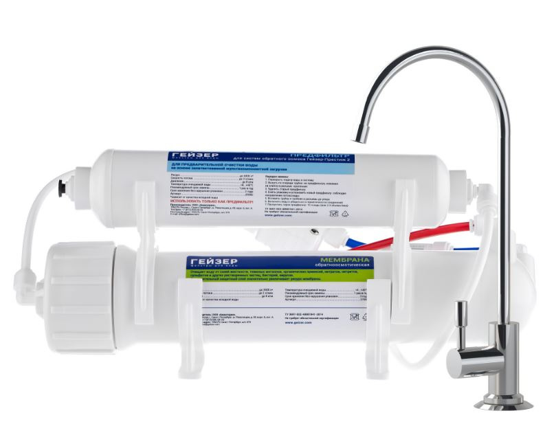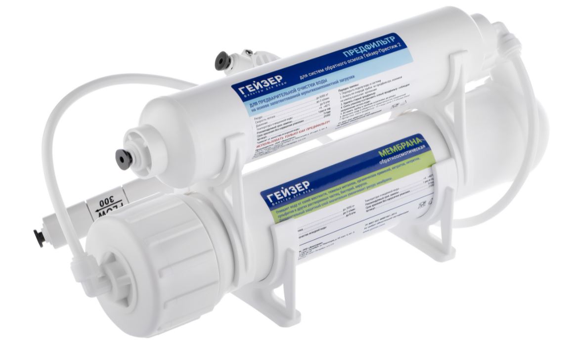 - Размер фильтра Гейзер Престиж 2 в 5 раз меньше, чем обычные бытовые обратноосмотические установки.