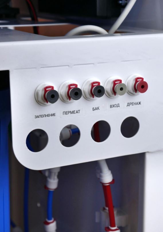 - Основная очистка воды выполняется на одной обратноосмотической мембране 3021 400 GPD. Пористость мембраны 0.0001 мкм.
