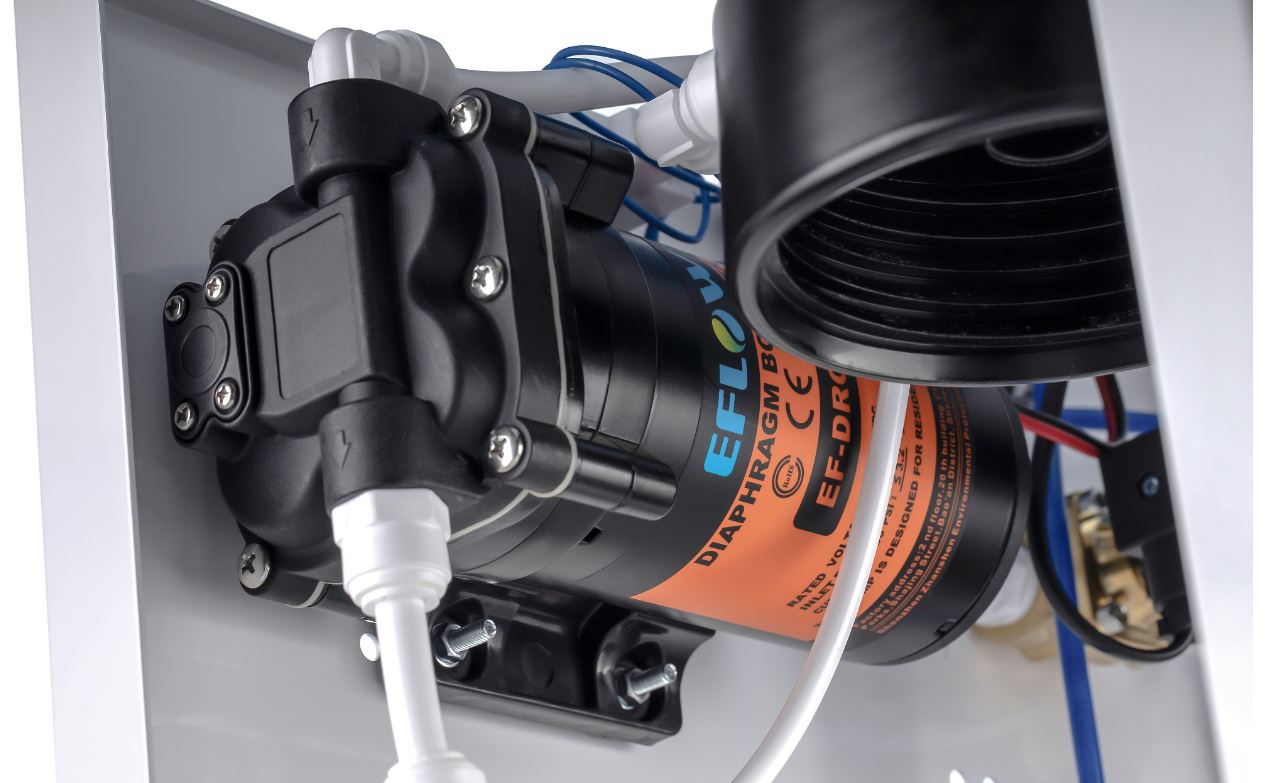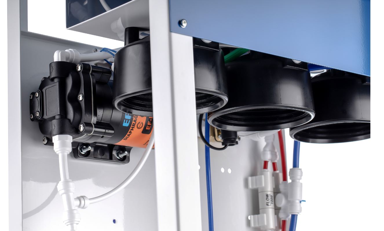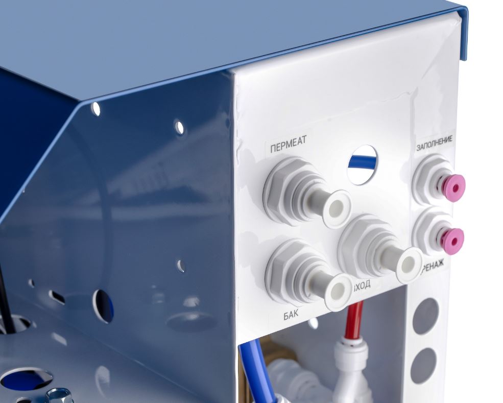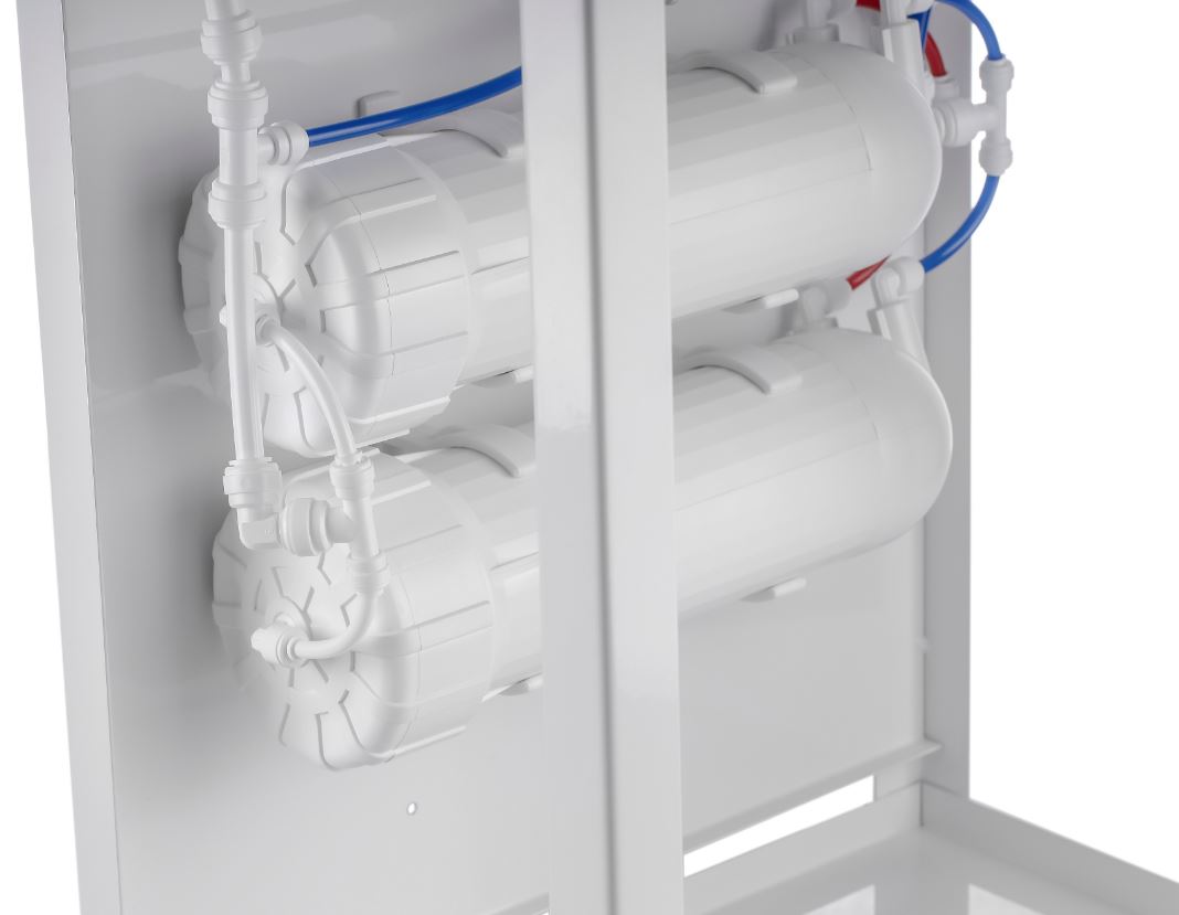 - Основная очистка воды выполняется на 2-х обратноосмотических мембранах 3012 400 GPD. Пористость мембран 0.0001 мкм.