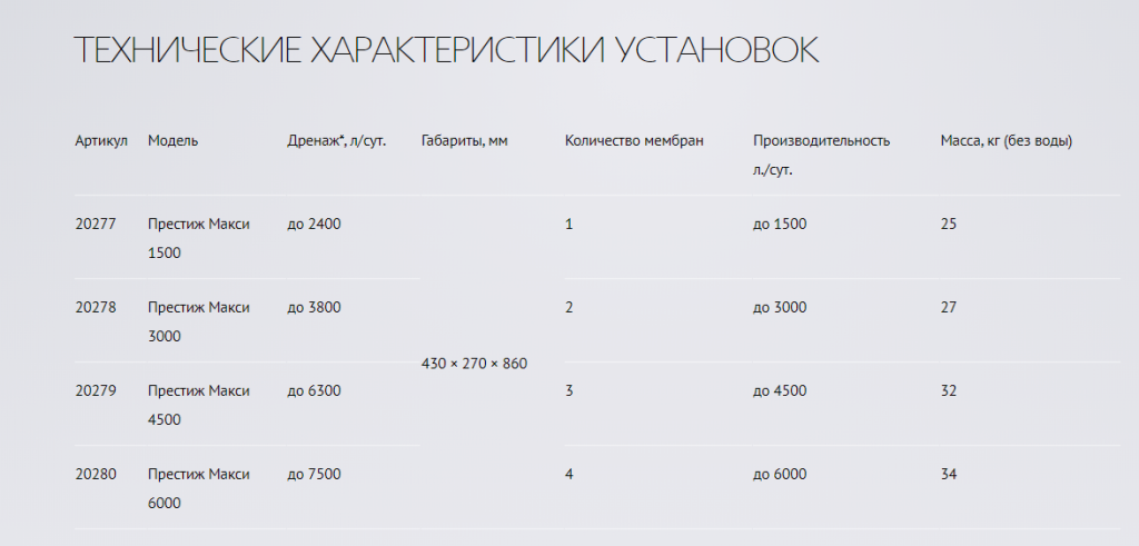- Отличие от Макси 1500 в модулях мембранной очистки. В фильтре Гейзер Престиж Макси 3000 установлены 2 мембраны 3012 по 400 галлон/сутки/каждая.
