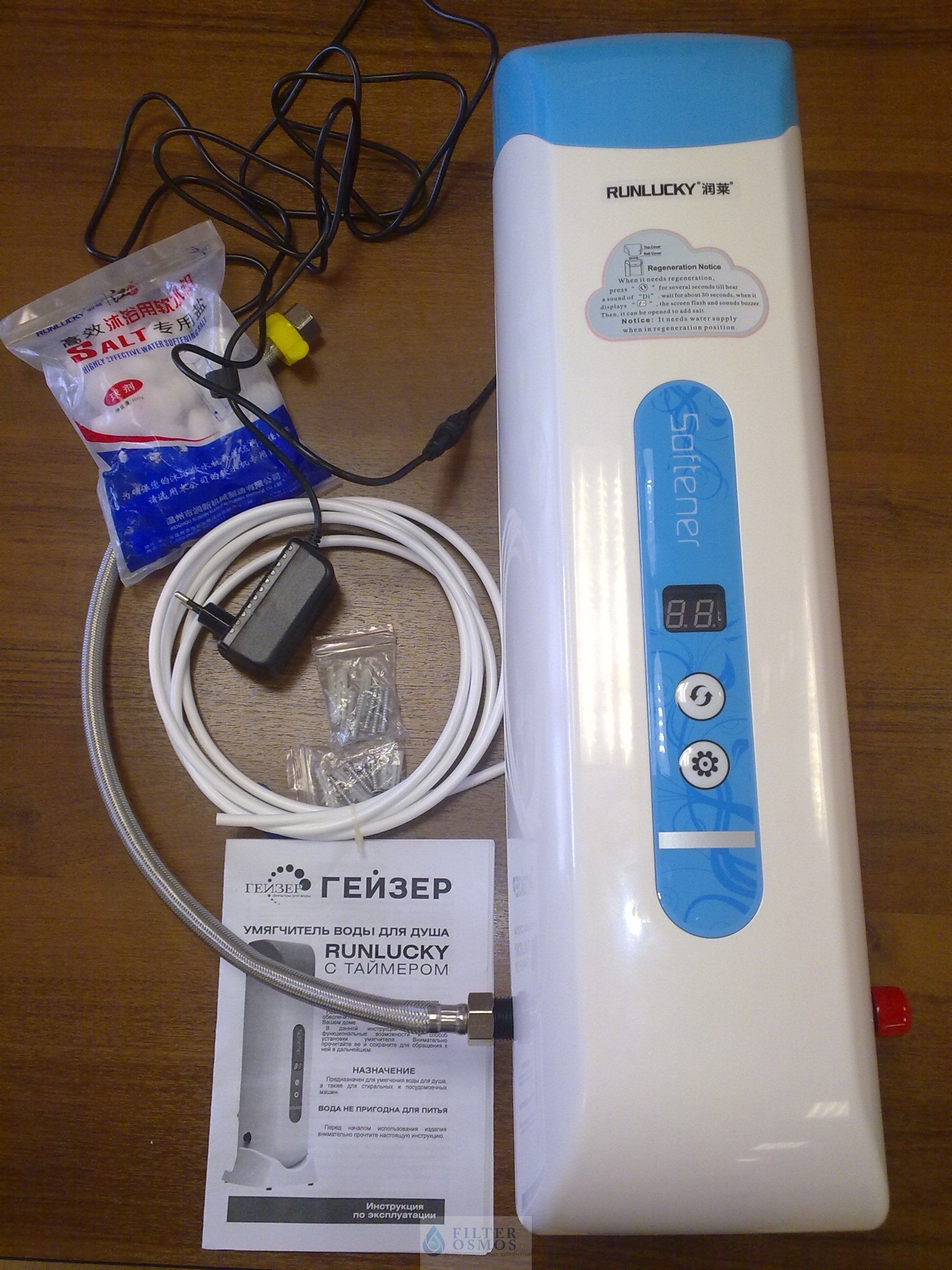Умягчитель может быть подключен к магистрали и холодной, и горячей воды. Не требует использования сменных картриджей: для регенерации достаточно открыть верхнюю крышку на корпусе и засыпать необходимое количество соли.Особенности умягчителя Runxin Runlucky