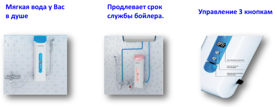 Компактная система очистки и умягчения воды для душа. Обеспечивает умягчение жесткой воды, снижение количества накипи при использовании бойлера и продление срока его службы. Подходит для использования как в городской квартире, так и в загородном доме.