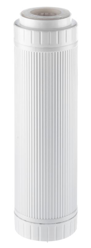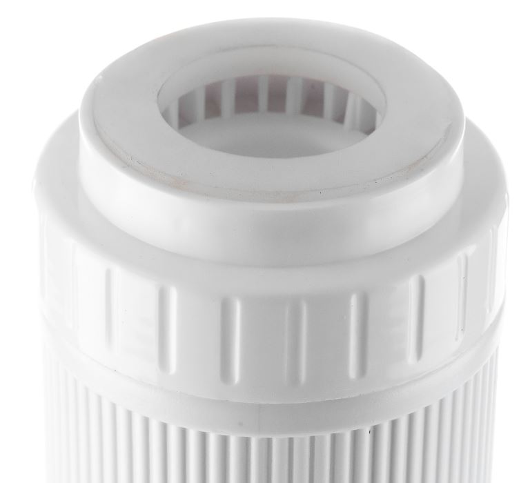 В картридж засыпан универсальный катионит Экотар В. Фильтрующий материал картриджа очистит от жесткости (до 10 мг-экв/л), растворенного железа (до 15 мг/л), марганца (до 0,2 мг/л).