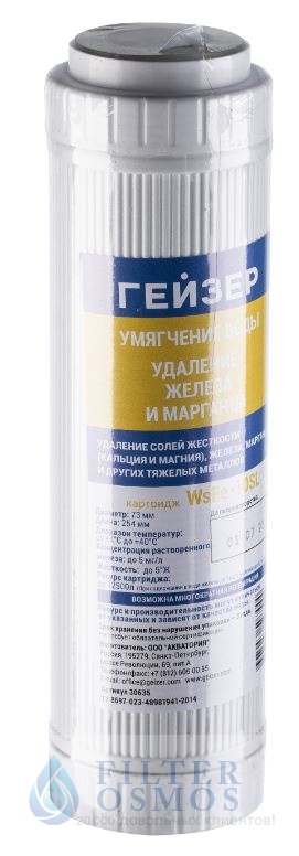 Картриджи Гейзер WsFe 10SL применяются для очистки артезианской и скважинной воды от извести и растворенного железа, марганца, тяжелых металлов.Используют в питьевых фильтрах Гейзер 3: Гейзер 3 ВК(БС), Гейзер 3ИВС, Гейзер Био 331, Гейзер Био 332, Гейзер Ультра Био 431, Гейзер Стандарт Ж, Гейзер Классик Ж, Гейзер Макс.Используют в питьевых фильтрах Гейзер 3: Гейзер 3 ВК(БС), Гейзер 3ИВС, Гейзер Био 331, Гейзер Био 332, Гейзер Ультра Био 431, Гейзер Стандарт Ж, Гейзер Классик Ж. Фильтроэлемент устанавливают в корпуса питьевых фильтров 10SL других производителей ( например, Атолл, Аквафор, Барьер, Новая Вода и др.).