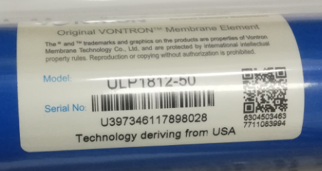 Главным элементом обратноосмотической системы является мембрана. Системы обратного осмоса комплектуются полупроницаемой мембраной Vontron ULP1812-50 рулонного типа. Она обеспечивает ультраглубокую очистку воды от всех видов загрязнений: органических включений, микроорганизмов, растворенных химических примесей, солей жесткости и тяжелых металлов, радионуклидов и других.