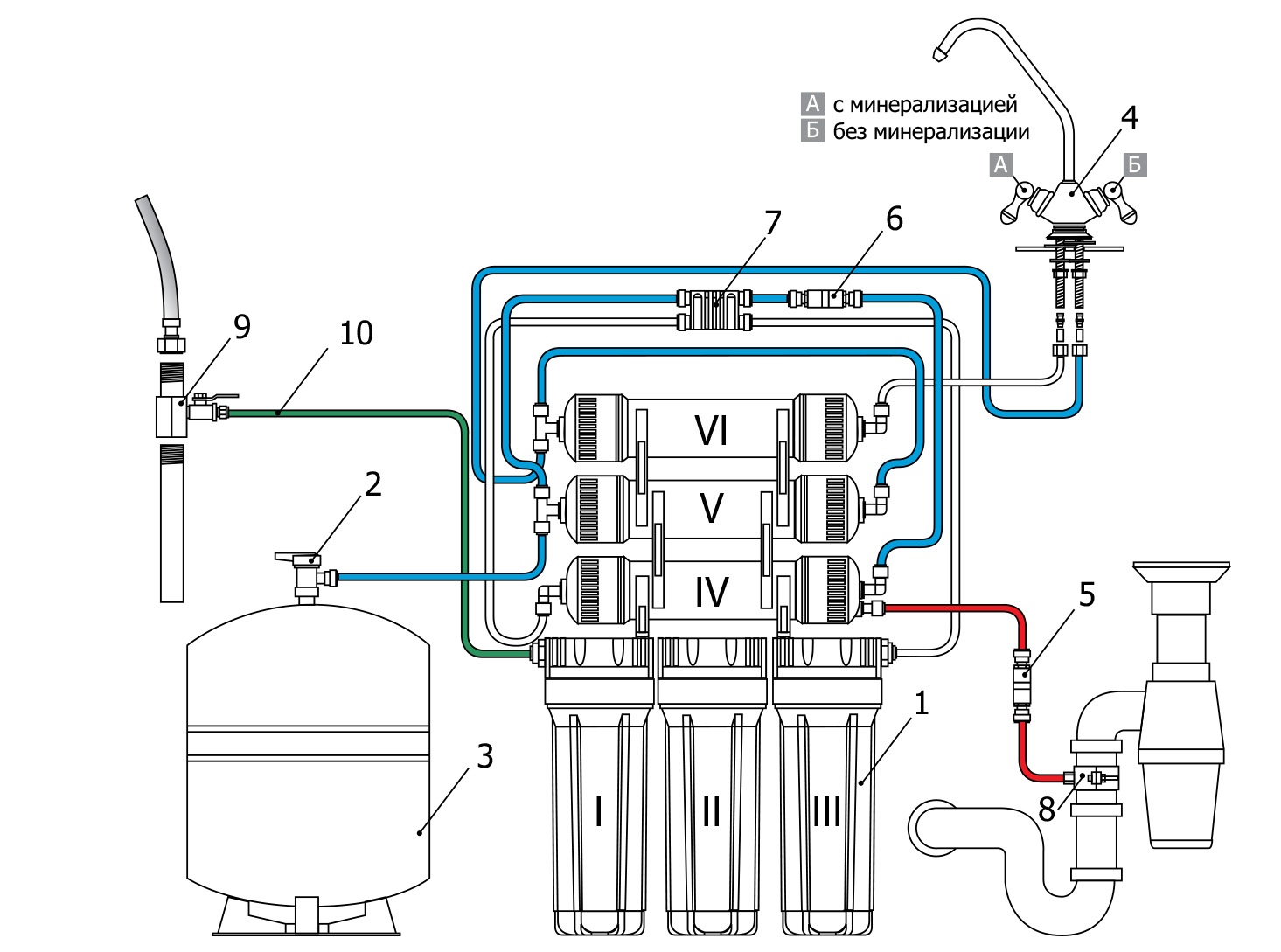 - Низкого давления в накопительном баке.